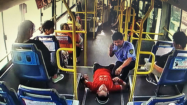 8月2日,市公交公司駕駛員王強(qiáng)像往常一樣,駕駛著6路公交車行駛在線路上,當(dāng)車行駛到天貿(mào)城站時(shí),一男子突然倒在車內(nèi),王強(qiáng)見(jiàn)狀立即將車緩慢停靠在站牌旁,向暈倒男子方向跑去,一邊安撫他防止其睡著,一邊撥打120急救電話。這就出現(xiàn)了文章開(kāi)頭的一幕。